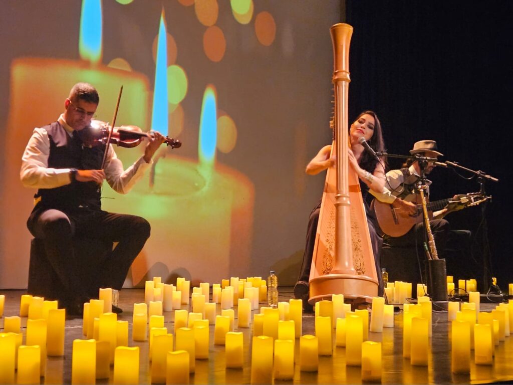 Às 17h, a tarde ganhou ainda mais intensidade com o tema “Trio Amadeus à Luz de Velas: Clássicos do Rock”, que levou o público às alturas com grandes sucessos internacionais, incluindo versões vibrantes de: